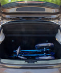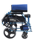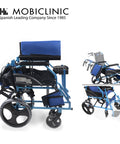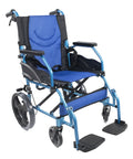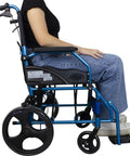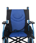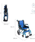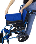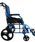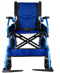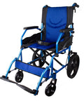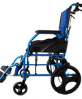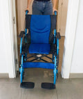 Sedia a rotelle pieghevole in alluminio con freni sulle maniglie, colore blu