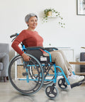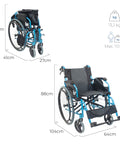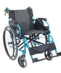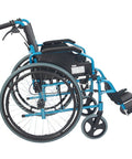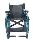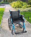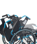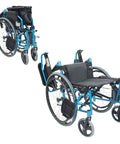 Sedia a rotelle pieghevole con schienale diviso e braccioli ribaltabili colore blu