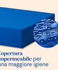 Tessuto impermeabile protegge il materasso da liquidi e macchie. Ideale per pazienti o persone con incontinenza