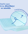 Este colchón te cuida por partida doble. Por un lado, su superficie respira gracias a una fina cuadrícula de cortes que te mantiene fresco y alivia la presión en las zonas clave. Por otro lado, su base está diseñada para el movimiento, con cortes profundos que le permiten doblarse junto a tu cama articulada de forma natural y segura.