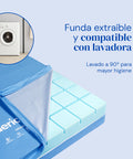 La funda sanitaria es extraíble y compatible con lavadora permitiendo lavados hasta 90º para una higiene profunda y protección duradera.